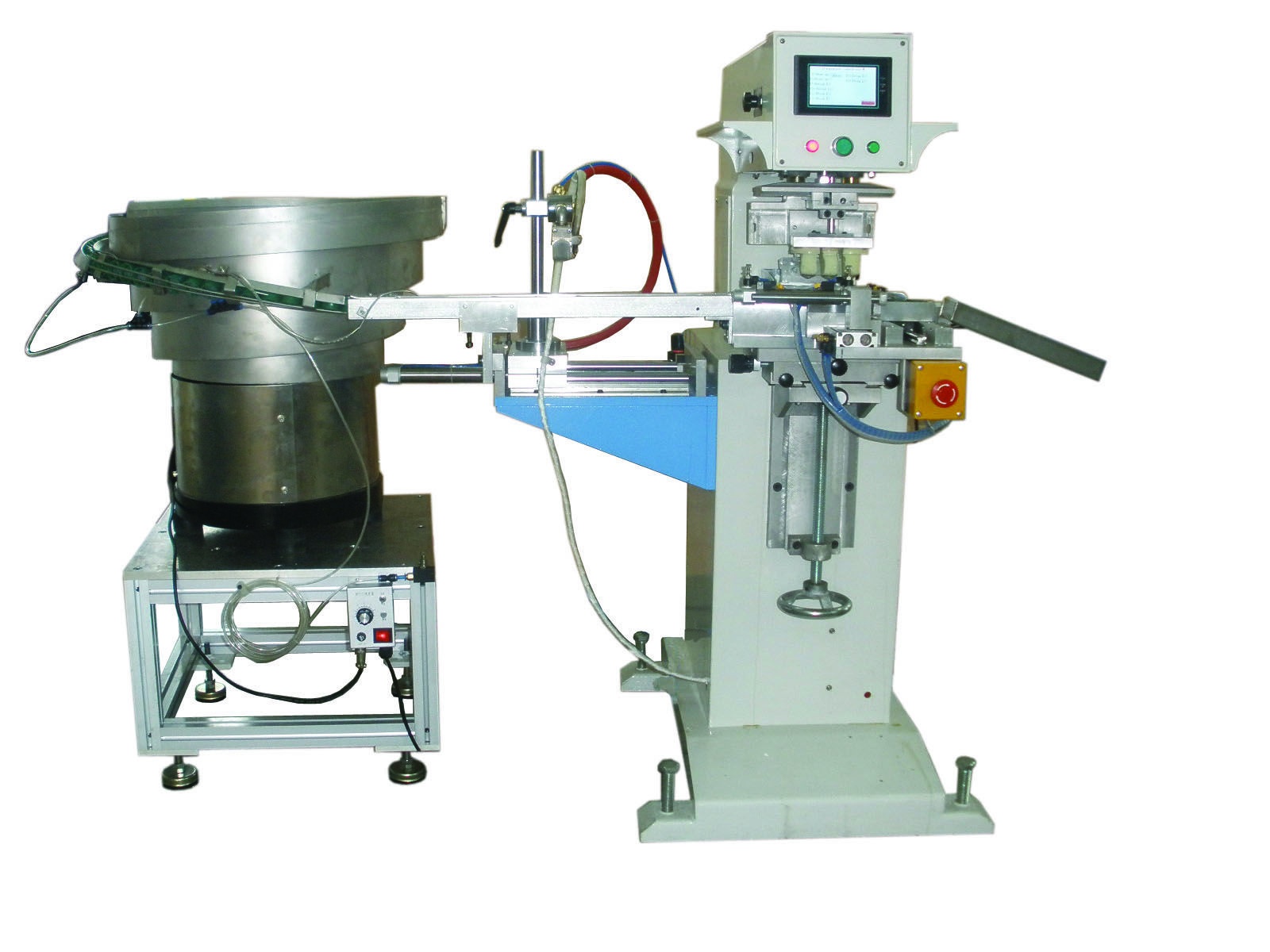 機型TM-155C單周期: YES工件高度70mm印刷速度1800Pcs/h鋼板尺寸:100mmx100mm印刷面積:50mmX50mm控制面板: TOUCHscreen電源: 110V or 220V 50/60HzV電功率:20W 6BarW外尺寸:560mmX340mmX540mm